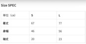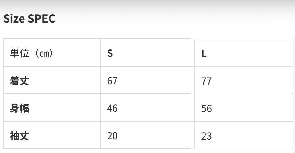 ※ サイズ展開はS、Lの半袖です。